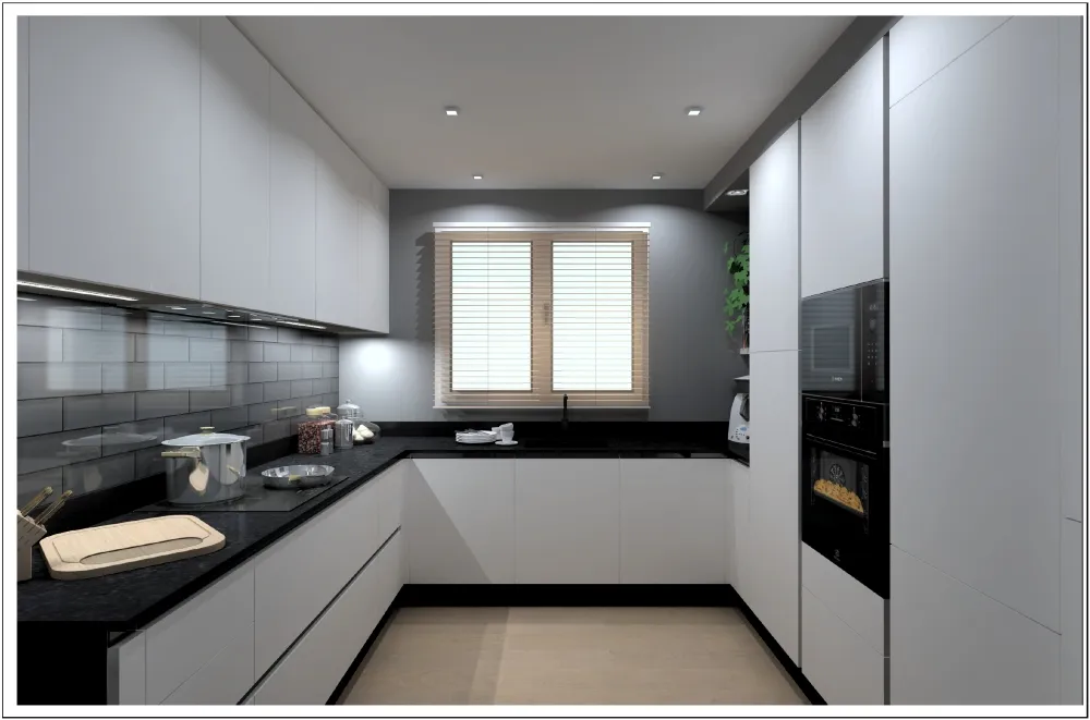 Cuisine Italienne Façade Blanc Mat & Plan Granit Noir Z